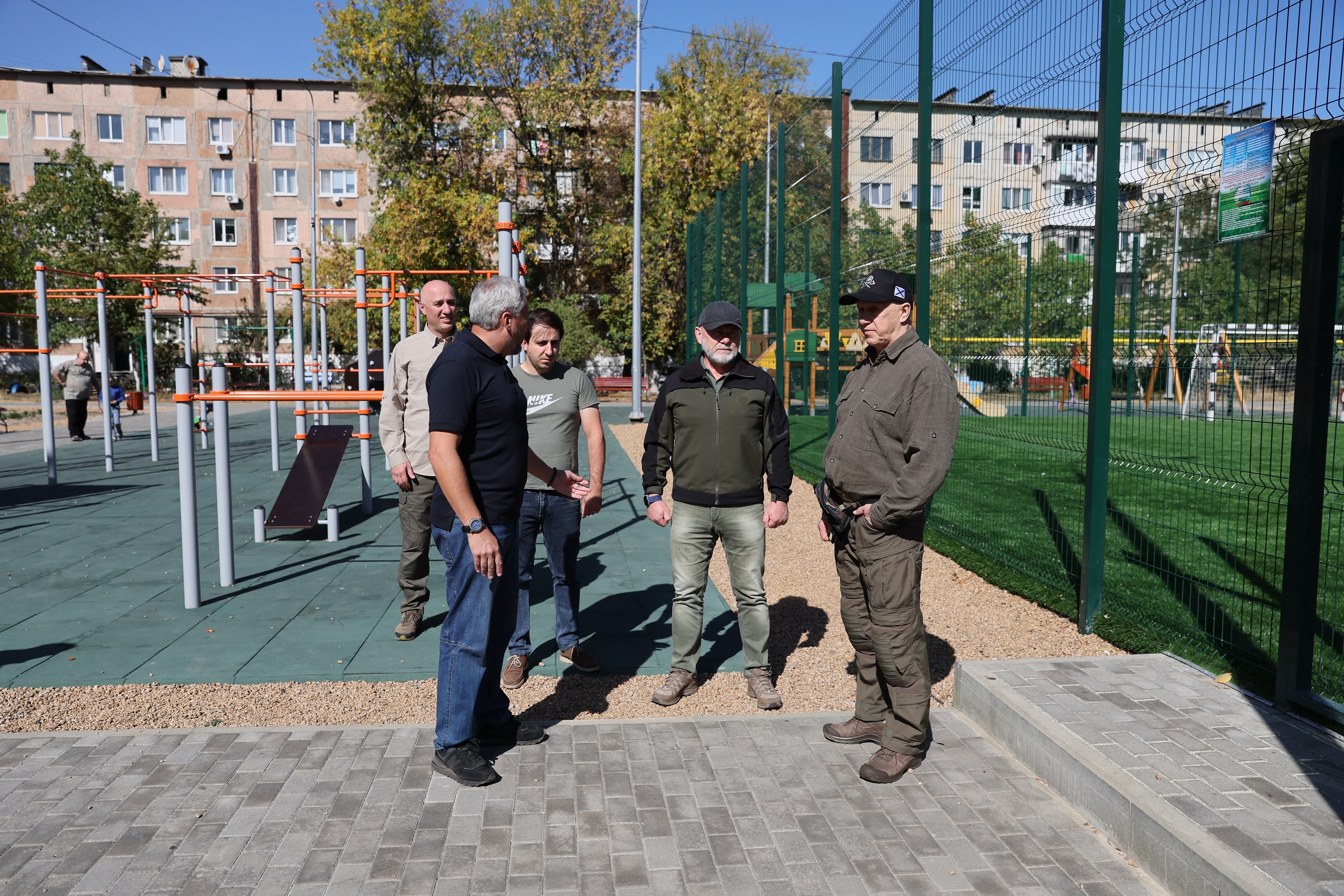 В Амвросиевке Юрий Трутнев посетил обновленную центральную площадь им. Ленина. При поддержке Амурской области была произведена полная замена плиточного покрытия, оборудован современный сухой фонтан, модернизирована система освещения, установлены новые скамейки и детская площадка, отреставрирован памятник Ленину. Площадь превратилась в комфортное и привлекательное место для отдыха жителей города. Сейчас ведутся работы по обновлению фасада многоквартирных домов, прилегающих к площади.