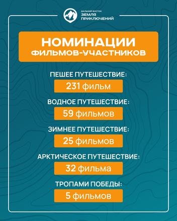Больше всего заявок в номинации «Пешее путешествие» – 231 фильмов. В номинацию «Водное путешествие» поступило 59 видеоработы, «Зимнее путешествие» – 25, «Арктическое путешествие» – 32 фильма.