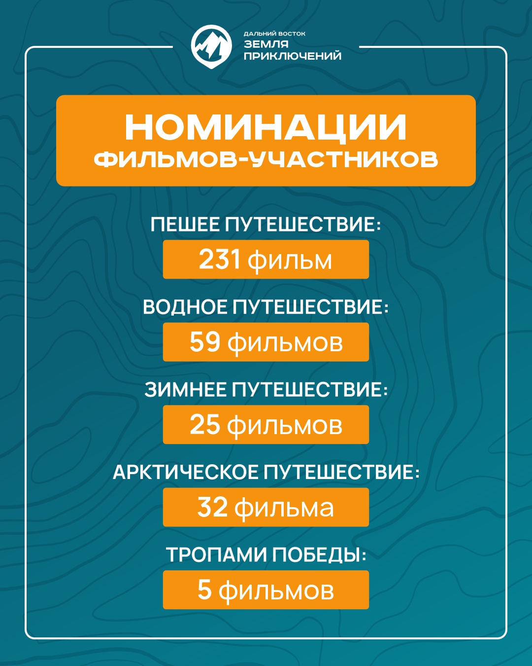 Кроме того, 5 фильмов участников отобрано для специальной номинации «Тропами Победы». Напоминаем, чтобы принять участие в данной номинации, нужно снять фильм о путешествии по местам боевой славы в субъектах, находящихся в пределах Дальневосточного федерального округа и Арктической зоны России. Готовый фильм нужно заявить в одну из четырех основных номинаций: пешее, водное, зимнее или арктическое путешествие, а жюри конкурса уже самостоятельно отберет фильм для участия в номинацию «Тропами Победы».