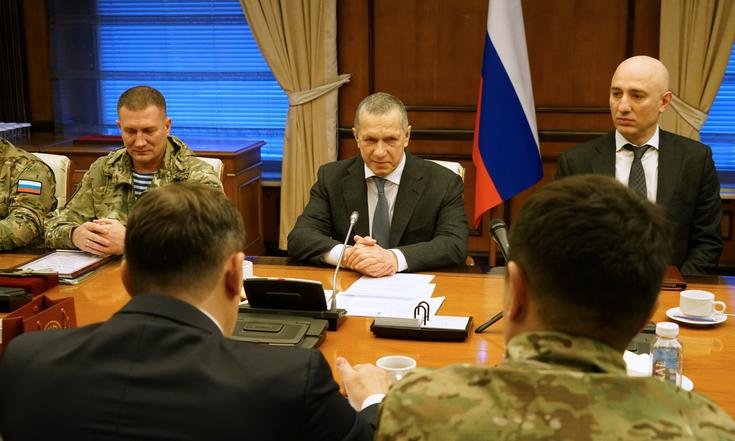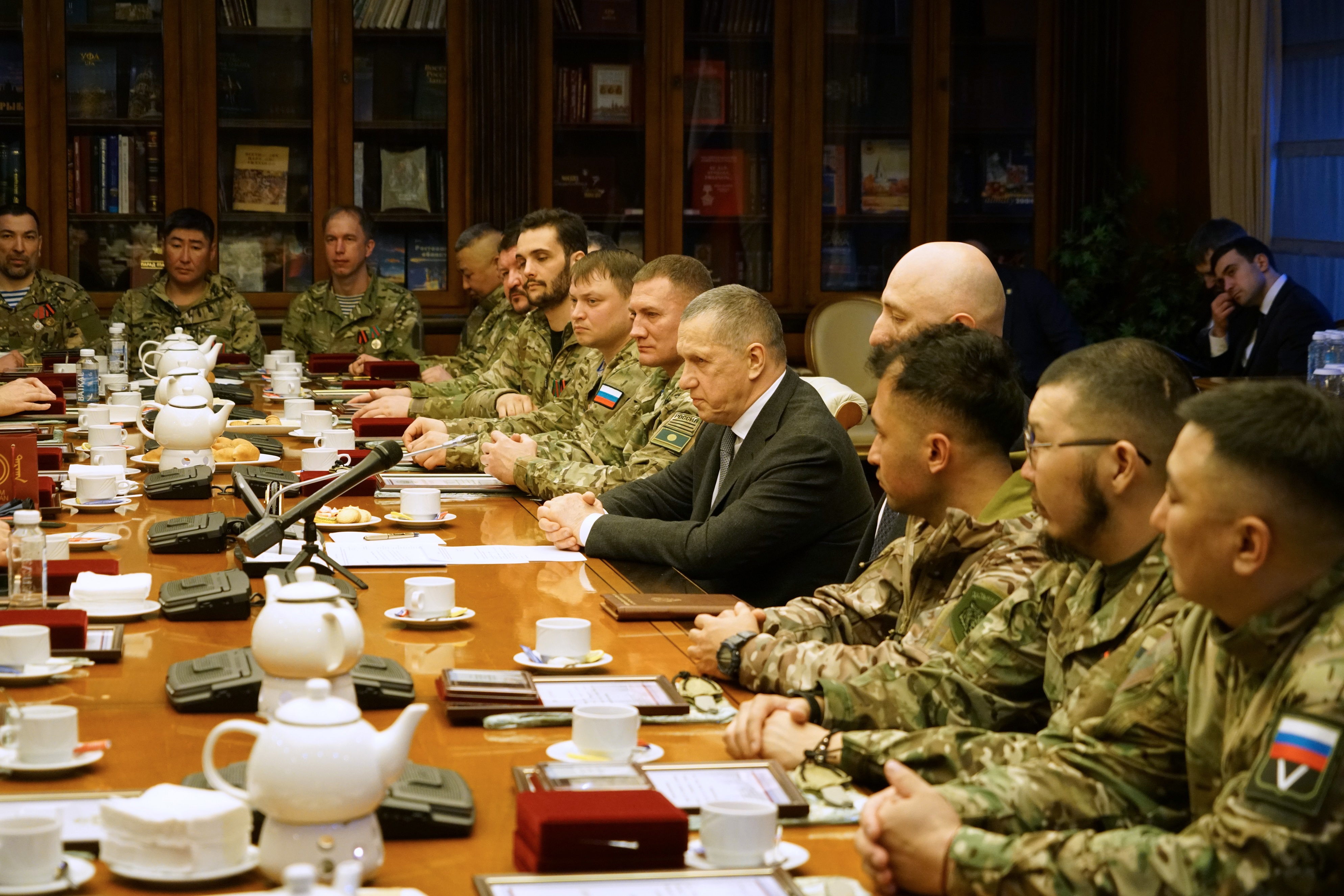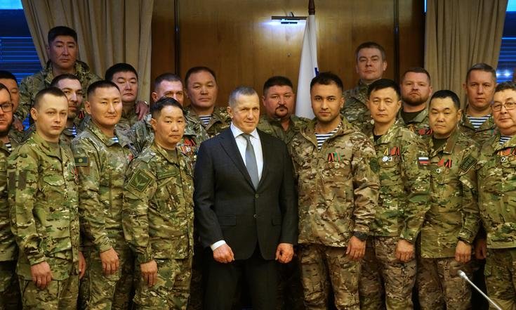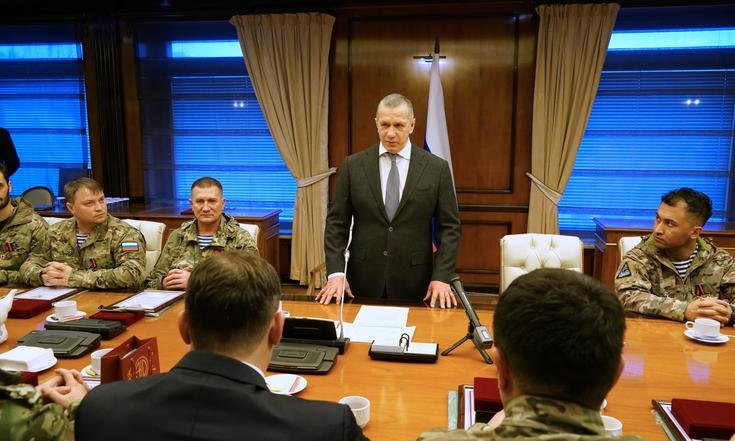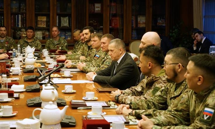 Заместитель Председателя Правительства РФ – полномочный представитель Президента РФ в ДФО Юрий Трутнев провёл встречу с отрядом добровольцев государственных гражданских служащих, вернувшихся с СВО по окончанию контракта.