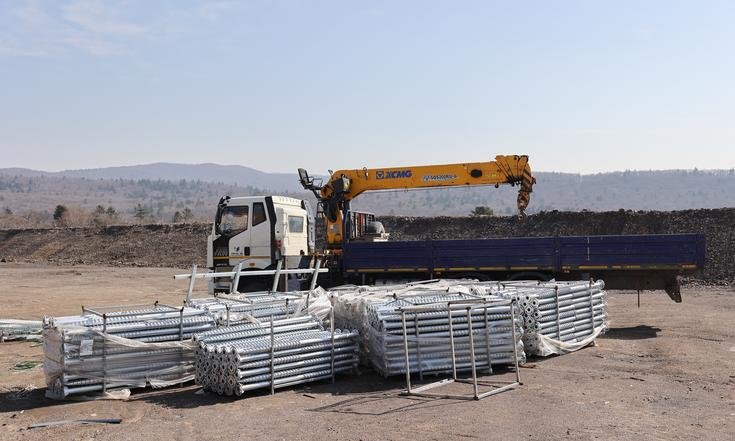 Сейчас выполнен монтаж 731 сваи под ограждение стрелковых зон «500», «2500» (открытых галерей) на протяжении 2167 метров. Всего будет произведен монтаж 2147 свай. Созданы монолитные конструкции двухэтажного здания. Смонтированы опоры ЛЭП.