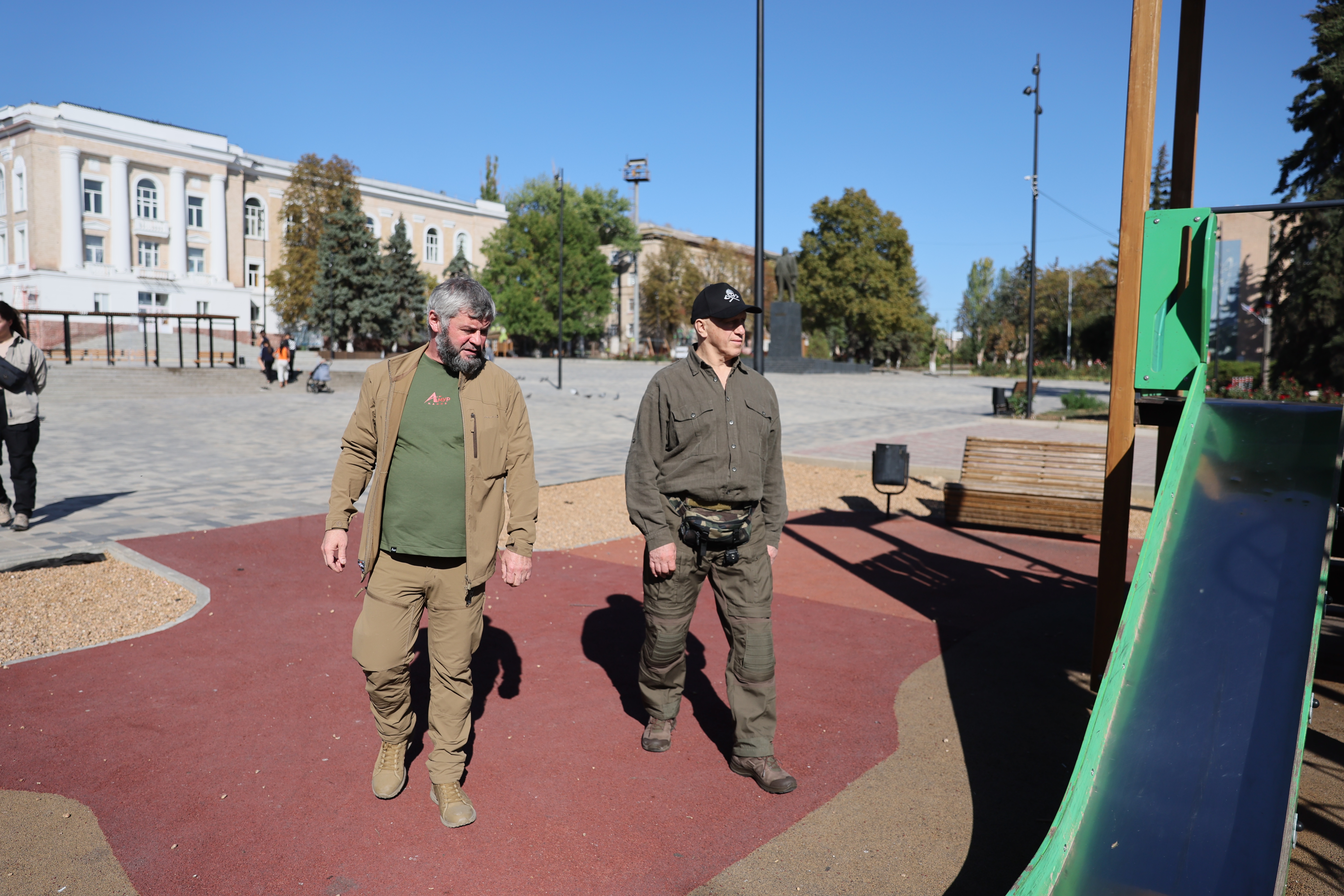 В Амвросиевке Юрий Трутнев посетил обновленную центральную площадь им. Ленина. При поддержке Амурской области была произведена полная замена плиточного покрытия, оборудован современный сухой фонтан, модернизирована система освещения, установлены новые скамейки и детская площадка, отреставрирован памятник Ленину. Площадь превратилась в комфортное и привлекательное место для отдыха жителей города. Сейчас ведутся работы по обновлению фасада многоквартирных домов, прилегающих к площади.