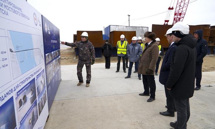 Завершена сборка первого коффердама – большого цилиндра шириной до 40 метров и высотой 18 метров. Уникальная технология предполагает доставку собранного цилиндра баржами и его установку на дно реки для создания сухого пространства под водой, что позволяет строителям работать в обычных условиях на дне водоема. Всего коффердамов будет три – каждый будет установлен под пилон будущего моста. Вывод в русло реки намечен на июнь 2026 года, сразу после ледохода. Подобный метод при строительстве мостовых сооружений применяется в российской практике впервые.