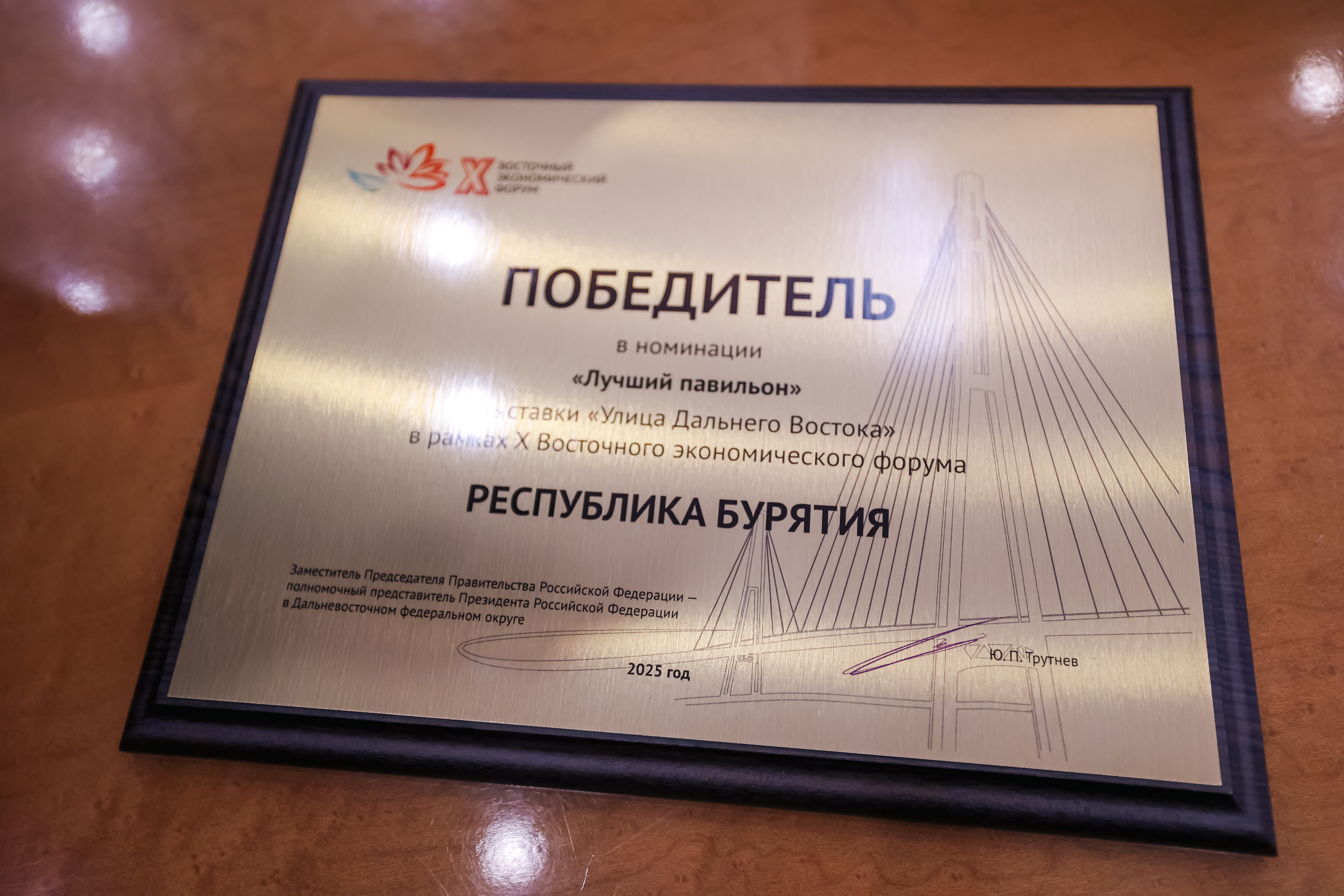 «В этом году в десятом юбилейном Восточном экономическом форуме приняли участие более 8 тыс. человек из 75 стран мира. Это рекордный показатель. Руководство отечественных и международных компаний с интересом относится к развитию российского Дальнего Востока. Этот интерес обусловлен нашей с вами работой по выполнению поручения Президента Российской Федерации. Традиционной частью ВЭФ стала выставка “Улица Дальнего Востока”. Уровень подготовки всех экспозиций в этом году существенно вырос. Лучшим павильоном выставки признана экспозиция Республики Бурятия. Хочу поблагодарить главу региона Алексея Самбуевича Цыденова. Проделана большая работа. Он сказал, что исчерпал возможности постоянно побеждать остальные регионы, поэтому просит повысить ему планку. Посоветуемся и, может, так и сделаем. Выставка “Улица Дальнего Востока” стала самостоятельным и важным элементом Форума. Мы научились интересно рассказывать о том, чем гордятся территории. Это строительство предприятий, культурные особенности, туристическая привлекательность. Благодарю всех глав регионов за эту работу», – сказал Юрий Трутнев.