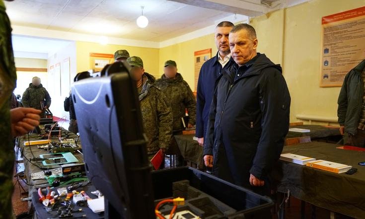 В рамках посещения учебного центра Юрий Трутнев провел осмотр учебных классов, летного полигона FPV-дронов и полигона БПЛА самолетного типа. Курсанты со всего Дальнего Востока осваивают азы управления беспилотными летательными аппаратами: от взлёта к маневрированию и боевому применению.
